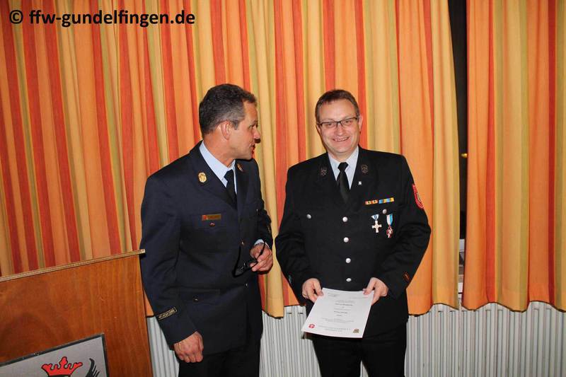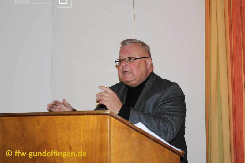 In seinen Grußworten zeigte sich Bürgermeister Franz Kukla beeindruckt von den auch in 2015 hohen Stundenzahlen, die die Feuerwehrdienstleistenden zu bewältigen hatten und bedankt sich bei allen Mitgliedern der Feuerwehr Gundelfingen. Auch wenn die Einsatzzahl im Vergleich zum Vorjahr leicht gesunken sei, so seien die Schwierigkeiten gleichbleibend. Die Vielfalt der Einsätze sei mit einer enormen Belastung für den Kommandanten verbunden, da er sich immer die Frage stellen muss, ob die Kameradinnen und Kameraden in der Lage sind, Hilfe zu leisten. Man verlangt ihnen das Höchste ab, denn das Leben der zu rettenden Menschen hängt am seidenen Faden des Könnens der Gundelfinger Feuerwehrler Sein besonderer Dank gilt dem langjährigen Kommandanten Michael Hirsch, der mit Stolz sagen kann, dass er in den 12 Jahren seiner Amtszeit maßgeblich dazu beigetragen hat, dass diese hohe Qualität der Gundelfinger Feuerwehr erreicht werden konnte. Kukla betont, dass Michael Hirsch für seine Mannschaft und auch für die gesamte Stadt Gundelfingen viel geleistet hat und bedankt sich im Namen der Stadt Gundelfingen mit einem kleinen Präsent. Gleichzeitig wünscht er dem Nachfolgerteam Michael Wohlhüter und Florian Grethlein ein glückliches Händchen in ihren neuen Aufgabengebieten. Die Gundelfinger Feuerwehr ist eine unverzichtbare Einrichtung der Stadt und aus dem Stadtleben nicht wegzudenken. Ihre Einsätze bei Bränden, Hilfeleistungen, Sicherheitswachdiensten und anderen Anlässen zeigen, dass eine Feuerwehr dringend gebraucht wird und deshalb auch für die Zukunft eine modern ausgestattete Feuerwehr erforderlich ist. Man muss also einen erfolgsorientierten und nachhaltigen Lösungsweg finden, mit dem beide Seiten zufrieden sind. Bürgermeister Kukla betont, dass sich die Stadt Gundelfingen ihrer Verpflichtungen bewusst sei. Zudem beteuert er, dass sich Stadtverwaltung und Stadtrat über die Notwendigkeit einer Feuerwehr im Klaren sind und dass zur Sicherung der hohen gemeindlichen Qualitäts- und Sicherheitsansprüche entsprechende Feuerwehr–Haushaltsmittel bereitgestellt werden müssen. Allerdings muss er die Hoffnung der Gundelfinger Feuerwehr, kurzfristig ein neues Gerätehaus beziehen zu können, zerschlagen, da die Machbarkeitsstudie für drei potentielle Standorte noch in vollem Gange sei und vieles hiervon nun mal abhänge. Das Anliegen des Gundelfinger Stadtrates sei es aber, kein Provisorium, sondern eine dauerhafte Lösung zu finden.