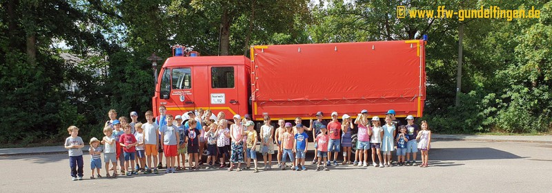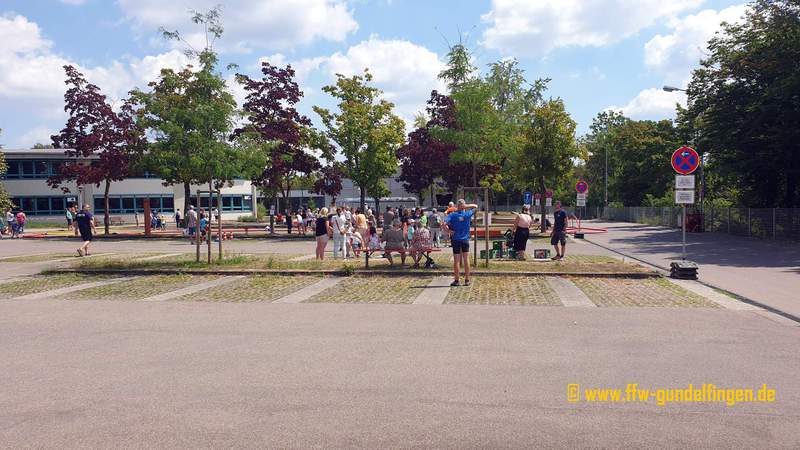 Nach 2 jähriger Zwangspause eröffnete die Feuerwehr Gundelfingen wieder das Kinderferienprogramm am Samstag des ersten Ferienwochenendes. Dieses fand wie gewohnt auf dem Parkplatz der Peter-Schweizer-Grundschule statt. Bei bestem Wetter bauten die Gundelfinger Floriansjünger 9 Spielestationen rund ums Thema Feuerwehr und Löschen, sowie einige Geschicklichkeitsspiele auf. Darunter waren u.a. die Klassiker Entenjagd, Ballrutsche, Schlauchkegeln und ein Wettangeln. Die 71 teilnehmenden Kinder mussten in den knapp 2 Stunden nicht nur ihre Schnelligkeit, sondern auch ihre Geschicklichkeit beweisen um den Tagessieg in einer der vier Altersgruppen zu erreichen. Während des kurzweiligen Nachmittags wurden alle Teilnehmer mit Süßigkeiten belohnt. Die Eltern konnten sich währenddessen bei Kaffee und Kuchen die Zeit im aufgebauten Zelt vertreiben. Bei der durch das Organ-Team um Jugendwart Daniel Freud, stv. Jugendwartin Laura Stutzmüller und Vorstand Uwe Hartshauser durchgeführten Siegerehrung bekamen die sechs erfolgreichsten Teilnehmer jeder Altersgruppe zur Erinnerung ein kleines Präsent überreicht.