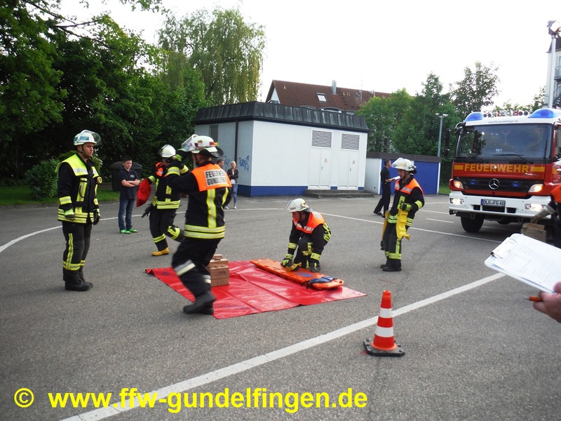 Ohne Probleme schafften siebzehn Aktive der Freiwilligen Feuerwehr Gundelfingen, darunter zwei Frauen und zwei Kameraden der Feuerwehr Peterswörth die Leistungsprüfung „Die Gruppe im Technischen Hilfeleistungseinsatz“ (THL) und legten die Leistungsabzeichen der Stufen 1 bis 6 mit großem Erfolg ab. Oft geht es im Feuerwehreinsatz um wenige Minuten, in denen die Wehrleute erlernte Handgriffe sicher und korrekt anwenden müssen. Die Leistungsprüfung zur Technischen Hilfeleistung spiegelt ein solches Einsatzszenario wider, bei dem binnen 240 Sekunden ein Verletzter aus einem Unfallauto befreit werden muss. Um die Person befreien zu können, müssen zunächst hydraulischer Rettungsspreizer und Schneidgerät einsatzbereit zum angenommen Unfallobjekt gebracht werden. Die Sicherung gegen nachfolgenden Verkehr sowie gegen Brandgefahren ist zu erstellen. Um die Einsatzstelle mit Flutlichtstrahler ausleuchten zu können, ist der Stromerzeuger rechtzeitig in Betrieb zu nehmen. In das Prüfungsergebnis fließen sowohl Kriterien ein wie detaillierte Kenntnisse über die im Fahrzeug mitgeführten Gerätschaften als auch zügiges und sauberes Arbeiten mit den erforderlichen Hilfeleistungsgeräten. Unter den Augen des Schiedsrichterteams um Kreisbandinspektor Markus Tratzmiller legten 17 Aktive in zwei Gruppen die Leistungsprüfung erfolgreich ab. Bei fünf Übungen hatten die Ausbilder um Kommandant Michael Hirsch die Mannschaft auf die Abnahme vorbereitet. In der Abschlussbesprechung bescheinigte Tratzmiller den Teilnehmern eine routinierte Leistung. Bürgermeister Franz Kukla, der zusammen mit den Stadträten Jürgen Hartshauser, Walter Kaminski und Joshua Schirm die Abnahme aufmerksam verfolgte, stellte insbesondere den gute Ausbildungsstand der Gundelfinger Feuerwehren heraus und versicherte „Die Stadt Gundelfingen steht hinter ihren Wehren! Macht weiter so, ihr werdet gebraucht!“, rief Kukla die Teilnehmer auf, sich auch weiterhin in den Dienst des Nächsten zu stellen.