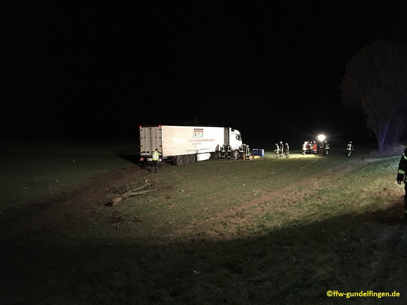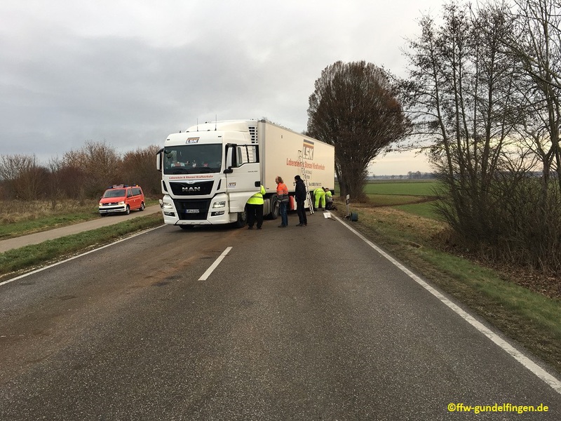 einem Verkehrsunfall mit einem LKW alarmiert.