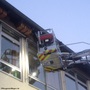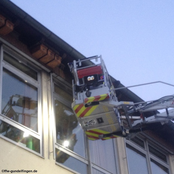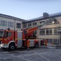 Die Drehleiter der Feuerwehr wurde zur Demontage von Vogelkästen am Dach der Mittelschule abgestellt.