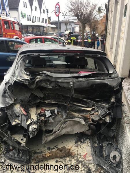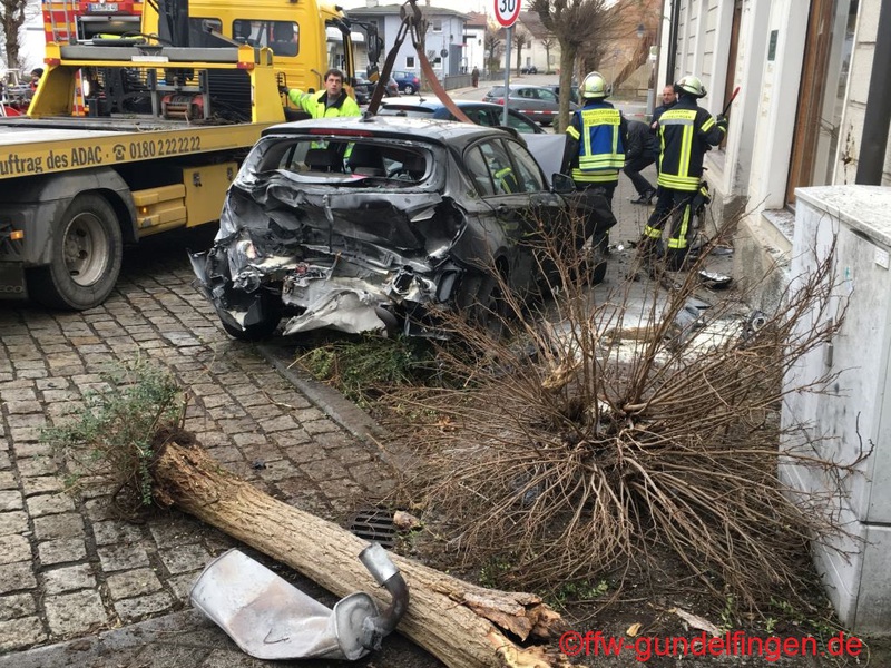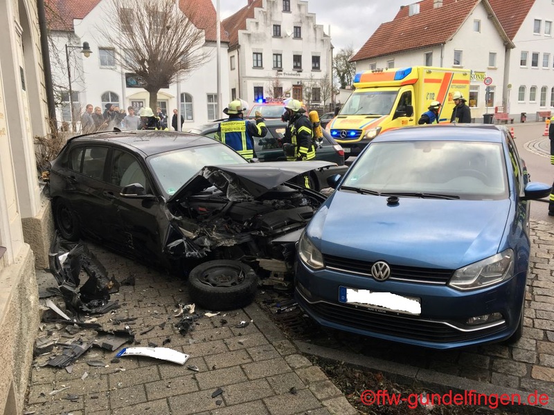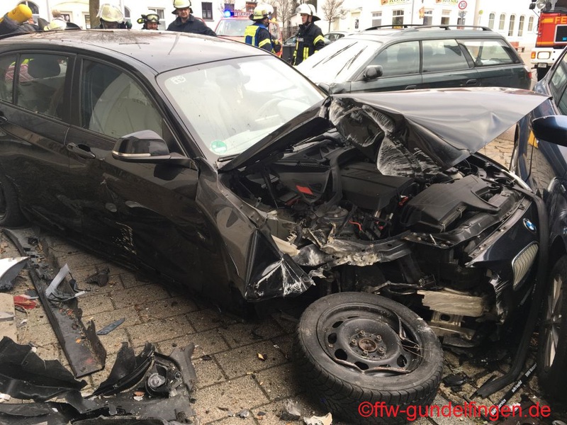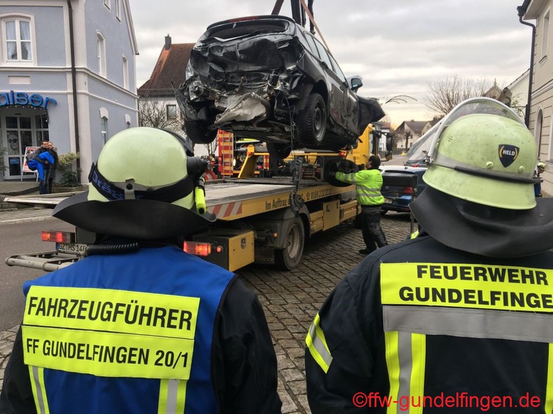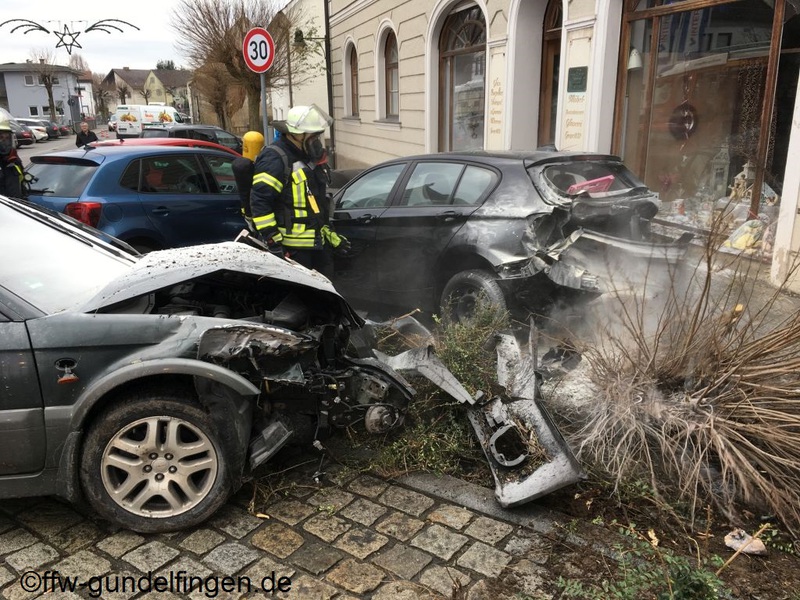 dass die Batterie im weiteren Verlauf abgeklemmt werden konnte. Durch die beschädigte Schaufensterscheibe kam es außerdem zu einer leichten Verrauchung in einem Verkaufsraum. Das Geschäft wurde durch den Einsatz eines Hochleistungslüfters vom Rauch befreit. Während des gesamten Einsatzverlaufes wurden von der Feuerwehr Gundelfingen verschiedene Sicherungsmaßnahmen an der Einsatzstelle übernommen. Außerdem unterstützte die Feuerwehr bei der Bergung der Unfallfahrzeuge. Nachdem die Straße wieder frei war konnte die