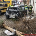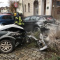 Am Vormittag des 23. Dezembers kam es zu einem Verkehrsunfall im Kreuzungsbereich Bahnhofstraße / Unter Vorstadt mit vier beteiligten PKW´s. Ein in Richtung Innenstadt fahrender PKW-Lenker verlor aus bislang ungeklärter Ursache die Kontrolle über sein Fahrzeug und prallte gegen ein parkenden PKW. In Folge des Zusammenstoßes wurden zwei weitere Fahrzeuge, eine Schaufensterscheibe sowie ein Baum beschädigt. Bis zum Eintreffen der Feuerwehr wurde der leichtverletzte Unfallverursacher von Ersthelfern versorgt. Er wurde mit einem Rettungswagen zur Untersuchung in eine Klinik gebracht. Durch den Zusammenstoß kam es zu einer Rauchentwicklung im Fahrzeugheck des parkenden PKW. Zur Brandbekämpfung wurde der Angriffstrupp des ersteintreffenden HLF´s unter PA eingesetzt. Damit das Fahrzeugheck des rauchenden PKW´s zugänglich wurde, musste das Fahrzeug des Unfallverursachers von der Feuerwehr weggezogen werden. Nach weiterer Erkundung durch den Angriffstrupp mit der WBK konnte festgestellt werden, dass die Rauchentwicklung durch eine beschädigte Fahrzeugbatterie verursacht wurde. Durch den Einsatz eines Rettungsspreizers wurden beschädigte Fahrzeugteile entfernt, so