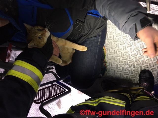 Die Feuerwehr Gundelfingen wurde am späten Freitag Abend zu einer Tierrettung nach Haunsheim gerufen. Eine junge Katze saß seit