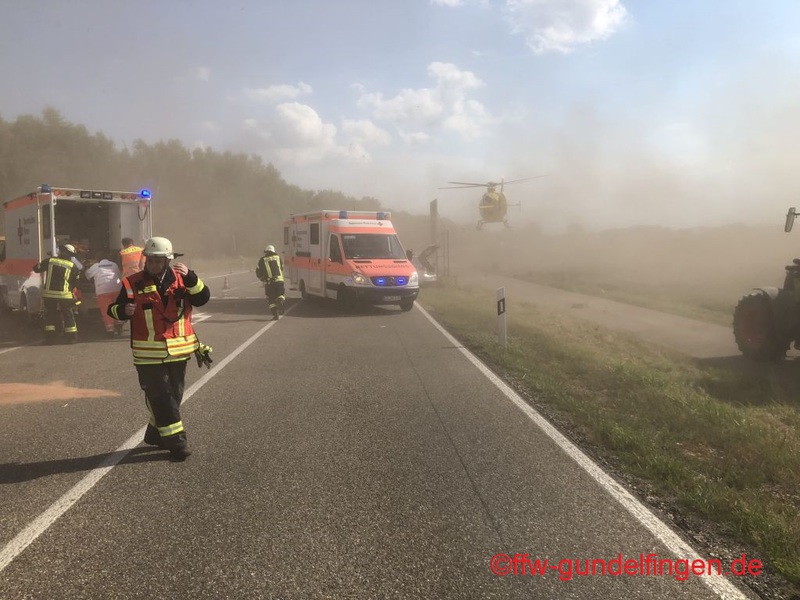 Am Dienstagabend wurde die Feuerwehr Gundelfingen zu einem gemeldeten Verkehrsunfall mit einer eingeklemmten Person auf die B16