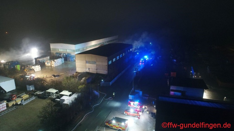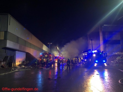 Bergenweiler zu einem Brand bei einem Abfallentsorgungsunternehmen nach Bächingen alarmiert.