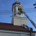 Kirchturmuhr gewickelt. Die Uhr wurde durch den Einsatz der Drehleiter von der Fahne befreit.