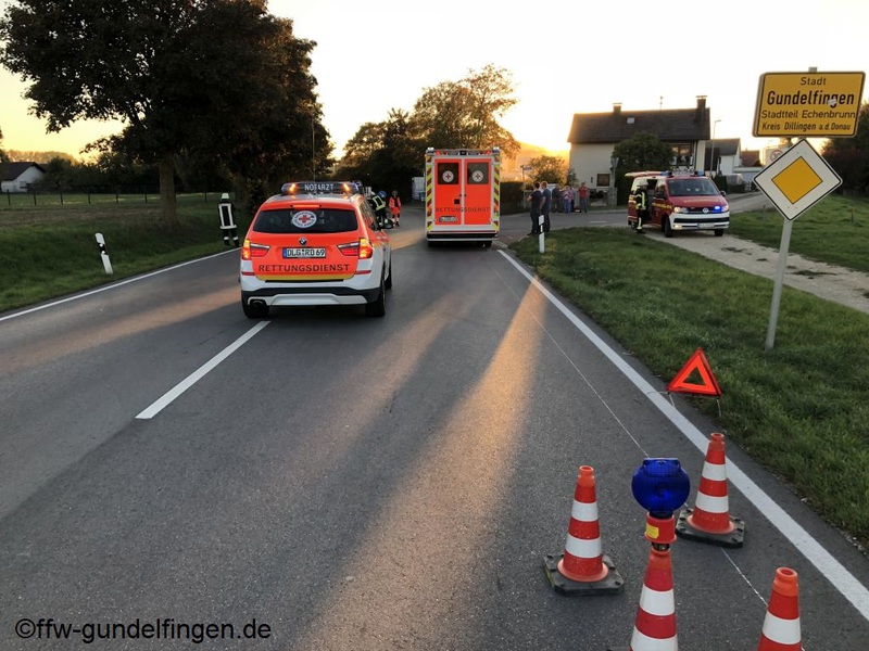 Die Feuerwehr wurde am Samstag-Abend zu einem Verkehrsunfall in die Lauinger-Straße alarmiert. Bei einem Abbiegevorgang im
