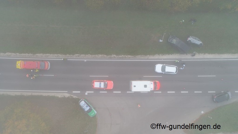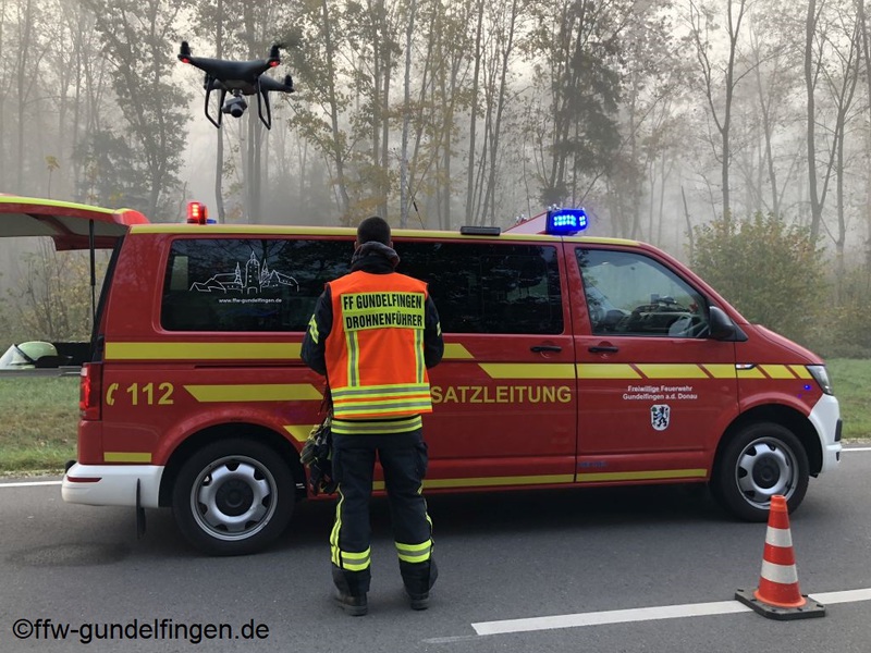 aus Gundelfingen und Peterswörth haben die Verkehrsregelung übernommen. Zur Unfallaufnahme wurden für die Polizei Aufnahmen aus der Luft mit der Drohne aus dem Gundelfingen 12/1 gemacht. Die
