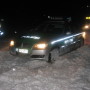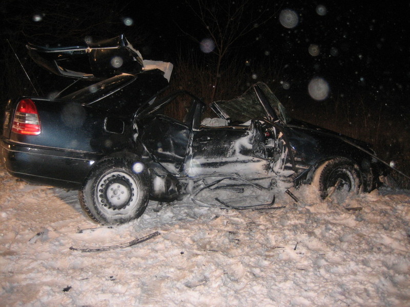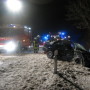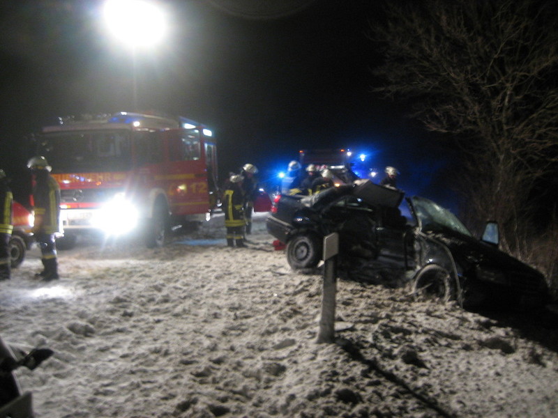 und landete mit seinem beschädigten Fahrzeug in den Schneemassen des angrenzenden Ackers.