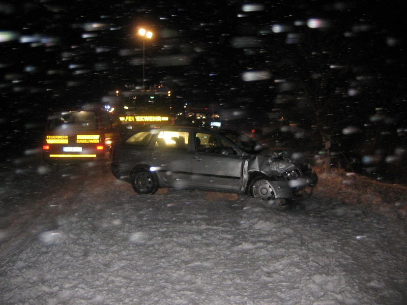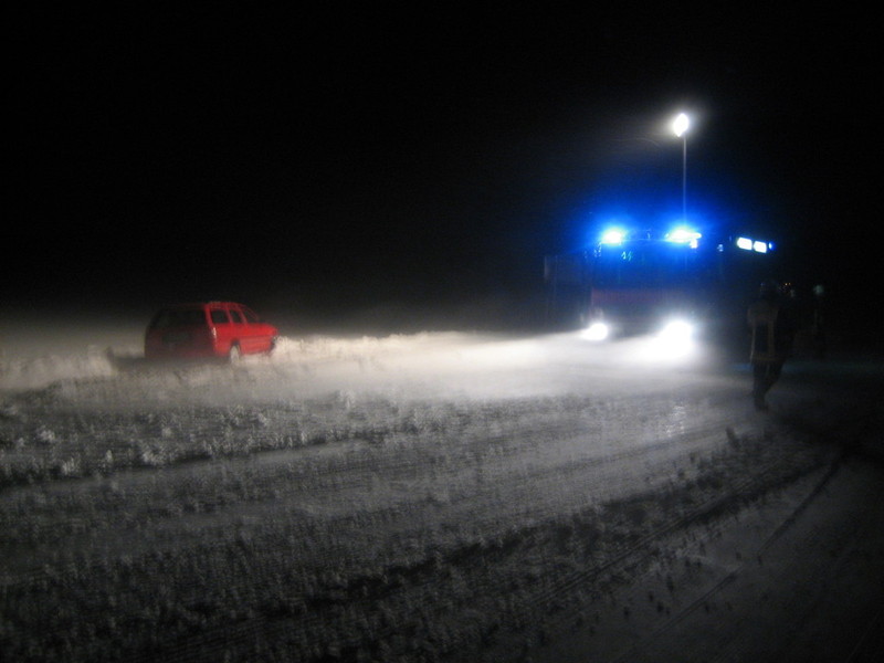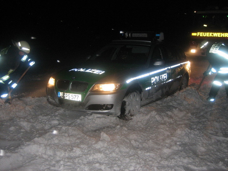 sich mehrere Fahrzeuge u. a. auch ein Polizeifahrzeug (Bild FFG_006) in den Schneemassen fest. Ein aus Fahrtrichtung Günzburg kommender PKW-Lenker übersah die Straßenabsperrung, fuhr in dieselbige