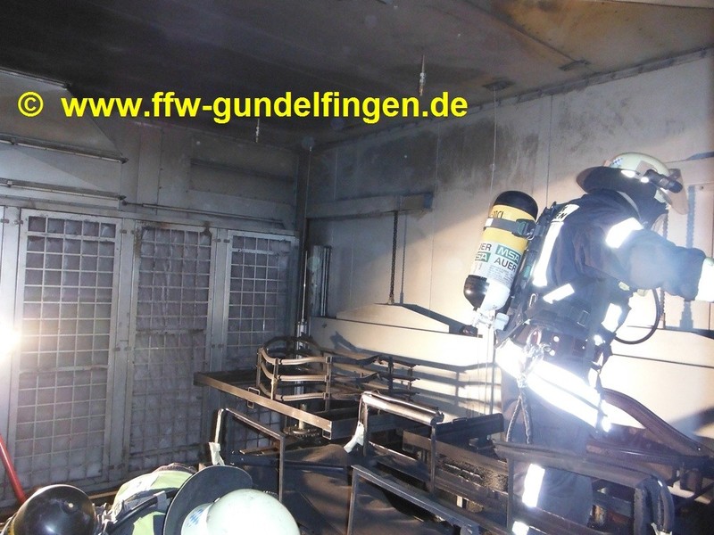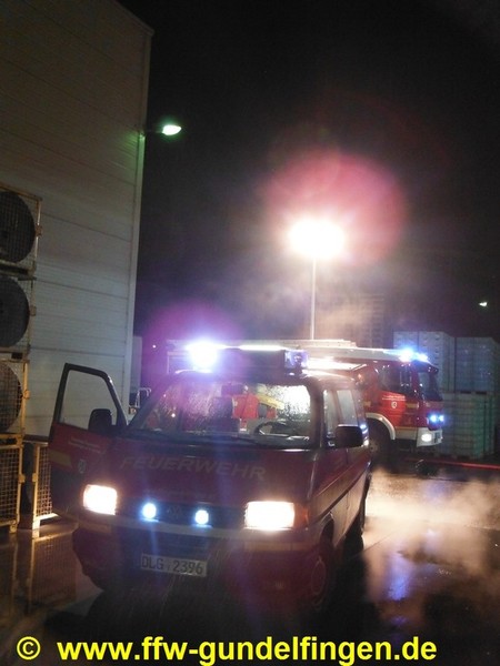 Am Sonntagabend. 02.02.2014 wurde unsere Freiwillige Feuerwehr Gundelfingen um 23:11 Uhr über die Brandmeldeanlage eines gummiverarbeitenden Betriebes ins Gundelfinger Industriegebiet alarmiert. Bereits bei der Anfahrt wurde uns mitgeteilt, dass es sich um einen Brand im Bereich der automatischen Lackieranlage handelt. In der gesamten Fertigungshalle hingen dichte Rauchschwaden, so dass wir die RWA-Dachklappen über die CO2-Notauslösestationen öffneten. In der automatischen Lackieranlage wird die Abluft über Abluftschächte und Filteranlage abgesaugt. Vermutlich entzündeten sich Ablagerungen innerhalb der Abluftkomponenten, so dass es zu einem Schwelbrand mit starker Rauchentwicklung kam.