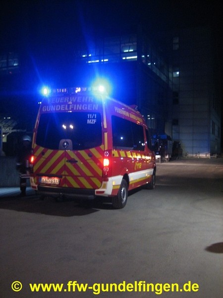 Ein Großaufgebot an Rettungs- und Einsatzkräften wurden in einen metallverarbeitenden Betrieb in die Peterswörther Straße nach Gundelfingen alarmiert. Nach Juli 2013 bereits zum zweiten Mal war durch ein Leck aus einer Umschmelzanlage über 700 Grad heißes, flüssiges Aluminium ausgelaufen und ergoss sich auf einen darunterliegenden Kabelschacht, so dass es zu einem Schmorbrand gekommen war. Gegen 20 Uhr bemerkten Mitarbeiter das Leck in der Anlage. Daraufhin wurde vorsorglich ein Großaufgebot an Einsatzkräften, die Werkfeuerwehr Gartner, die Feuerwehren Gundelfingen, Echenbrunn, Lauingen, die Feuerwehr-Kreisbrandinspektion, die Unterstützungsgruppe Örtliche Einsatzleitung (UGÖEL) sowie mehrere Rettungswagen des Rettungsdienstes und des THW alarmiert.Der betroffenen Bereich konnte nur mit Umluft-unabhängigen Atemschutzgeräten betreten werden. Im weiteren Verlauf konnte durch Sicherungsmaßnahmen das auslaufende Aluminium gebändigt werden. Strom und Gasversorgung für die Umschmelzanlage wurden abgestellt. Der Bereich um die Halle mit der havarierten Umschmelzanlage wurde durch die Feuerwehr Gundelfingen ausgeleuchtet.