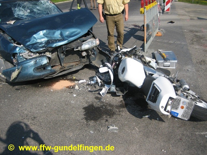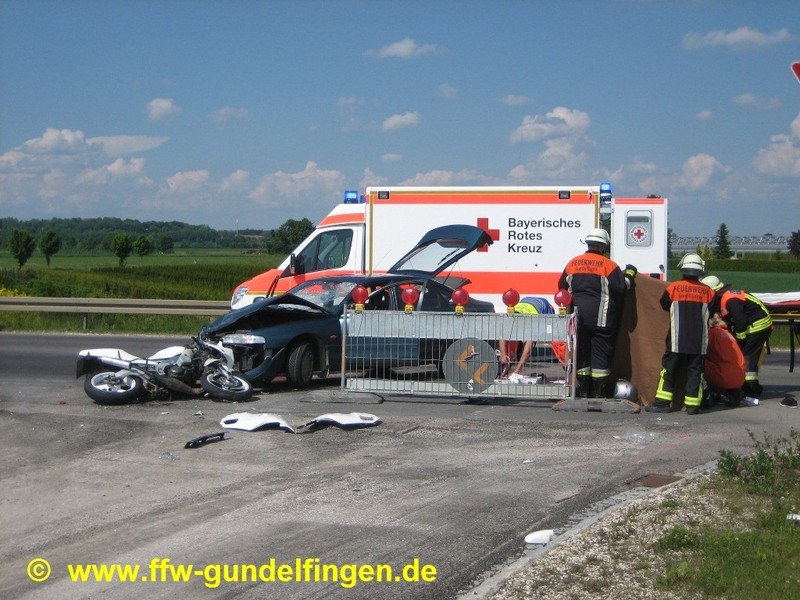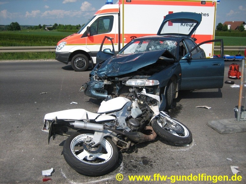 Wie die Polizei mitteilt, war ein 46-jähriger Pkw-Fahrer aus dem östlichen Landkreis von Gundelfingen in Richtung Medlingen unterwegs und wollte nach links auf die B16 abbiegen. Da diese Zufahrt aber aufgrund einer Baustelle gesperrt ist, musste der 46-Jährige wenden. Dabei übersah er laut Polizei ein Kraftrad, das von Medlingen in Richtung Gundelfingen unterwegs war. Es kam zu einem frontalen Zusammenstoß. Auf dem Motorrad saßen zwei 17-Jährige, beide aus dem westlichen Landkreis. Die jungen Männer wurden schwer verletzt. Der Fahrer des Zweirads wurde mit dem Hubschrauber ins Bundeswehrkrankenhaus Ulm geflogen, sein gleichaltriger Mitfahrer wurde mit einem weiteren RTH ins Klinikum Augsburg transportiert. Beide erlitten schwere, offene Brüche, sind aber nach derzeitigem Kenntnisstand außer Lebensgefahr. Der Unfallverursacher -gemäß Polizeiangaben wurden bei dem Autofahrer null Promille festgestellt- wurde ebenfalls verletzt und wurde in das Dillinger Krankenhaus gebracht. Der Gesamtschaden wird auf circa EUR 5.000 geschätzt.