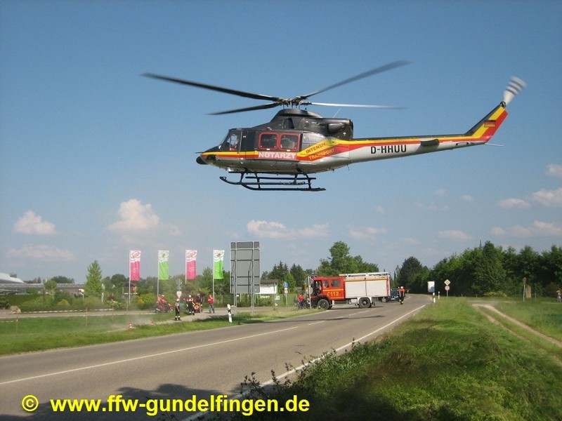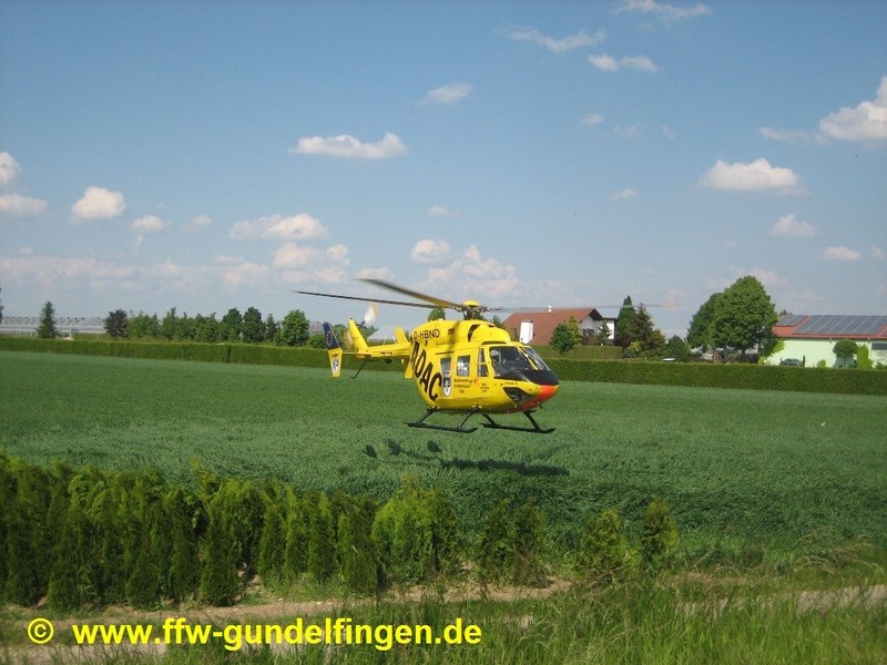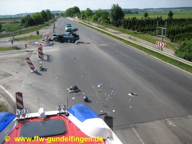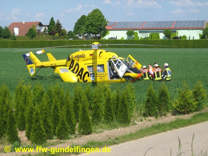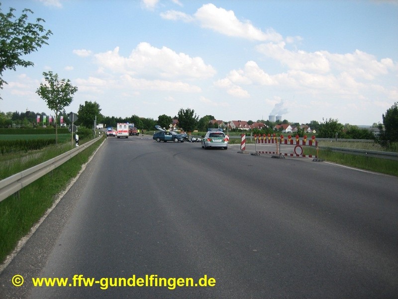 Unsere Freiwillige Feuerwehr Gundelfingen wurde um 15:41 Uhr zu dem Verkehrsunfall alarmiert. Helfend unterstützten wir Rettungsdienst und Notarzt. Den beiden Rettungshubschraubern (Christoph 22 aus Ulm sowie dem Intensiv-Transporthubschrauber Christoph Nürnberg der HDM-Luftrettung GmbH) wiesen wir einen provisorischen Landeplatz in der Nähe der Einsatzstelle zu und sorgten für die Landeplatzsicherung. Am Unfall-PKW klemmten wir die Batterie ab, um die Brandgefahr zu minimieren. Auslaufende Betriebsstoffe der verunfallten Fahrzeuge wurden mittels Vielzweckbinder und flüssigem Ölbindemittel abgebunden. Während der Rettungs-, Bergungs- und Aufräumungsarbeiten sowie zur Unfallaufnahme war die Bundesstraße 492 im Bereich der Einsatzstelle für ca. 2,25 Stunden komplett gesperrt, der Verkehr wurde durch unsere Freiwillige Feuerwehr geregelt bzw. umgeleitet. Einsatzende für die beteiligten Rettungskräfte war gegen ca. 18.00 Uhr. Die Polizei schätzt den Gesamtschaden auf circa EUR 5.000.