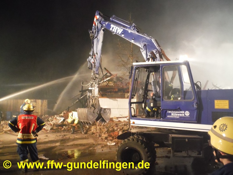 Über 150 Einsatzkräfte waren während des Einsatzes an der Brandbekämpfung und den weiteren Einsatzmaßnahmen beteiligt: dies sind die Freiwilligen Feuerwehren aus Echenbrunn, Gundelfingen, Peterswörth und Lauingen, die Werkfeuerwehr Gartner, das THW Dillingen, die Kreisbrandinspektion, die Unterstützungsgruppe örtliche Einsatzleitung (UG-ÖEL), das BRK der Kreisverbände aus Dillingen und Günzburg mit Notärzten, zwei Rettungshubschrauber aus Augsburg und Ingolstadt, Beamte der Kriminalpolizei Dillingen und das Landeskriminalamtes, Brandermittler und das Kriseninterventionsteam sowie Mitarbeiter der zuständigen Energieversorgungsunternehmen (EVU) und des Bauhofs der Stadt Gundelfingen a.d. Donau. Durch die v. g. Einsatzkräfte wurden im Verlauf des geschilderten Haupteinsatzgeschehens rund 1.025 Stunden Hilfe geleistet. Die Zusammenarbeit aller Hilfs- und Rettungsorganisationen im Verlauf des Einsatzes kann als sehr positiv bewertet werden. Dank gebührt dem Echenbrunner Gasthof Sonne für die Bereitschaft, die Verpflegung der Einsatzkräfte zu übernehmen - ebenso dem Gundelfinger Bauunternehmen, Fa. Nägele AG für die Bereitstellung des Kipper-LKW samt Kraftfahrer zur Beräumung der Schadensstelle.