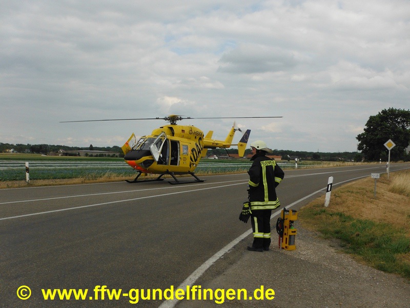 Schwer verletzt wurde ein 94-jähriger Mann aus dem Landkreis Dillingen am späten Freitagnachmittag, 20. Juni 2014 gegen ca. 16.45 Uhr bei einem Zusammenstoß mit einem Pkw. Nach Polizeimitteilungen, versuchte der Radfahrer mit seinem Elektrorad von einem Feldweg aus die Günzburger Straße in Richtung Offingen zu überqueren. Dabei übersah er offenbar das Auto einer 30-jährigen, vorfahrtsberechtigten Autofahrerin, die von der B16 abgebogen und in Richtung Gundelfingen unterwegs war. Bei dem Zusammenstoß mit dem Auto wurde der 94-Jährige schwer verletzt. Nach der Erstversorgung an der Unfallstelle wurde der verletzte Unfallverursacher mit dem Rettungshubschrauber, Christoph 22, in die Uniklinik nach Ulm geflogen.