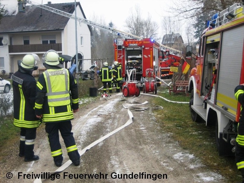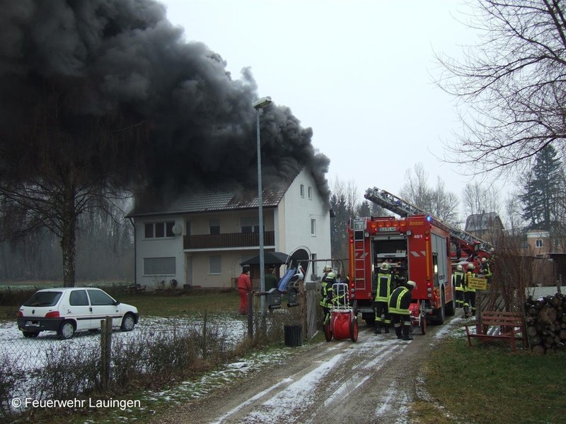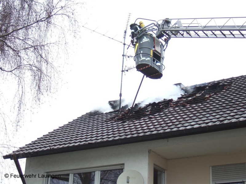Am Freitag, 27.01.2012 wurde unsere Freiwillige Feuerwehr Gundelfingen um 14:26 Uhr zu einem Dachstuhlbrand nach Lauingen in die Ludwigsau nachalarmiert. In einem Dreifamilienhaus in unmittelbare Nähe des Lauinger Klärwerks, brach am Nachmittag in der Dachwohnung ein Brand aus. Als der Bewohner von der Arbeit nach Hause kam, bemerkte er die Rauchentwicklung und alarmierte darauf hin die Feuerwehr. Das Erdgeschoss und der 1. Stock des Hauses waren unbewohnt. Verletzt wurde daher niemand. Die Rauchwolke, die durch den Brand entstand, war weithin zu sehen. Den Einsatzkräften der Feuerwehren Lauingen und Gundelfingen gelang es schnell den Brand unter Kontrolle zu bringen.