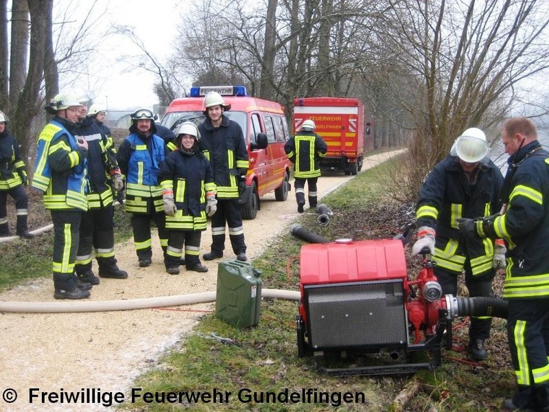Wegen der schlechten Löschwasserversorgung um das Brandobjekt wurde der Gerätewagen-Logistik (mit Schlauchkomponente) der Feuerwehr Gundelfingen alarmiert. Das Löschwasser musste mittels Tragkraftspritze aus der Donau entnommen und über eine lange Schlauchleitung zur Einsatzstelle gefördert werden.