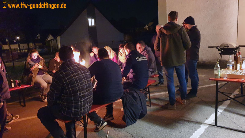 Nachdem in den vergangenen beiden Jahren aufgrund Corona der Maibaumhock ausfallen musste, konnten die Kameradinnen und Kameraden der Feuerwehr Gundelfingen diesen am 30.04. nun endlich wieder veranstalten. Hierzu wurde bereits am Nachmittag im Gundelfinger Stadtwald der feuerwehreigene Maibaum geschlagen, anschließend durch Laura Stutzmüller und Manuel Schneider geschmückt und danach auf dem Schlauchturm montiert. Am Abend musste die Feuerwehr dann den Absperrdienst zur Aufstellung des städtischen Maibaums vor dem Gundelfinger Rathaus übernehmen. Im Anschluss daran startete dann unser Maibaumhock am Gerätehaus. Jugendwart Daniel Freud bereite für den Abend seine berühmte Kräuterbutter und Stangenbrot vor. Zusätzlich wurden leckere Steaks und Würstchen gegrillt. Den Abend ließen wir dann am Lagerfeuer ausklingen und alle waren froh, dass ein gemütliches Zusammensitzen endlich wieder möglich war.