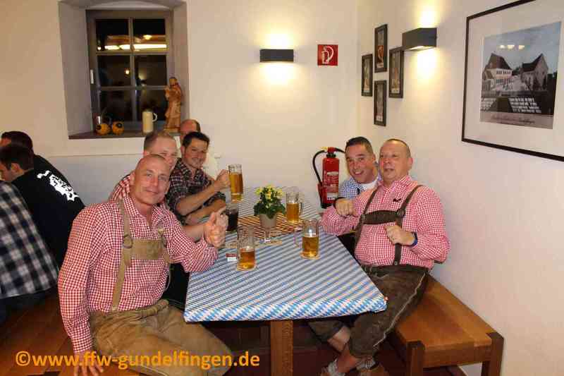 Ende Oktober fand wieder einmal das Oktoberfest der Feuerwehr Gundelfingen im Gundelfinger Bleichestadel statt. Neben den Gundelfinger Feuerwehrkameradinnen und -kameraden inkl. Lebenspartner waren auch die Kameraden aus Peterswörth, Echenbrunn, der Werkfeuerwehr Gartner sowie Kreisbrandinspektor Markus Tratzmiller mit Frau anwesend. Zur Überraschung und Freude aller Anwesenden standen auf einmal auch 6 Feuerwehrmänner von der befreundeten Brandweeer Beek (Niederlande) im Bleichestadel, die extra angereist waren. Des Weiteren konnten Vorstand Uwe Hartshauser und Kommandant Michael Wohlhüter auch mehrere Stadträte sowie Bürgermeisterin Miriam Gruß willkommen heißen. Für das leibliche Wohl hatten die Gundelfinger einen Grillwagen der Fa. Mössle mit frischen Hax´n, Händl und Spareribs organisiert. Wie inzwischen bei jedem Oktoberfest Tradition gab es auch ein kleines Spiel. Hierbei mussten die Kommandanten der anwesenden Wehren bei einer Bierverkostung jeweils das Oettinger herausschmecken. Dies gelang dem Beeker Dennis Smeets am besten. Als Zeitvertreib gab es auch noch die Möglichkeit des Wettnagelns an einem Baumstamm.