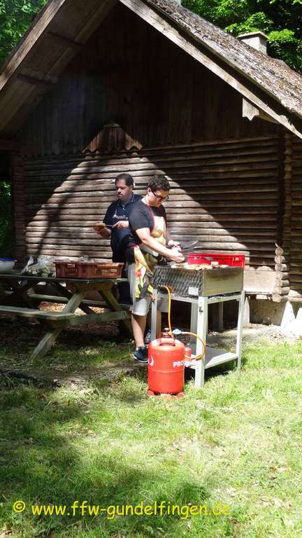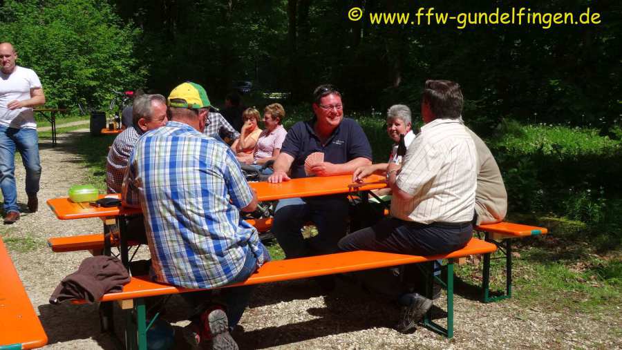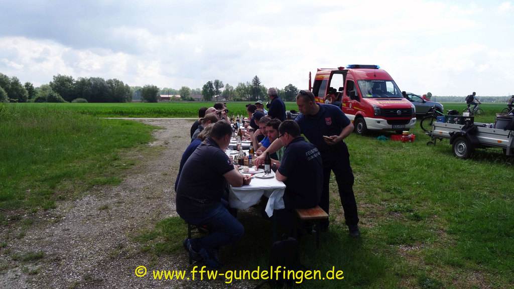 Die diesjährige Vatertagswanderung stand ganz im Zeichen der „Fuchsjagd“, wie es früher einmal Brauch in Gundelfingen war. Dabei starteten die beiden Füchse - in diesem Jahr Mario Wegele und Paul Hopf – mit etwas zeitlichem Vorsprung vom Gerätehaus in Richtung Jagdhütte und stellten der Meute, welche in 2 Gruppen aufgeteilt wurde, diverse Aufgaben wie z.B. Sackhüpfen. Die beiden Gruppen mussten diese im Wettkampf gegeneinander lösen und versuchen, die Füchse einzuholen. Dies gelang allerdings erst beim Pausenplatz, wo eine Bauernbrotzeit auf die hungrigen Teilnehmer wartete. Anschließend wurden die Ergebnisse der Aufgaben ausgewertet und beiden Gruppen erhielten jeweils einen Geschenkkorb, wobei der Siegerkorb selbstverständlich um einiges reicher gefüllt war als der Verliererkorb. Nach der Pause machten sich die Teilnehmer auf den weiteren Marsch zur Jagdhütte. Dort schwang nachmittags Grillmeister Daniel Wudy sein Zepter und grillte leckere Steaks und Würste. Den restlichen Nachmittag verbrachten wir in gemütlicher Geselligkeit, bei der auch die ein oder andere Runde Schafkopf absolviert wurde.