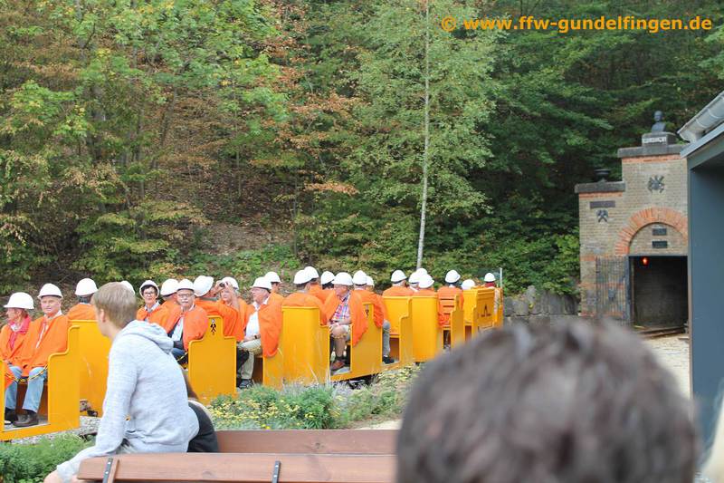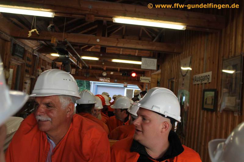 Der diesjährige Vereinsausflug führte unsere Gruppe unter der Führung unseres Reiseleiters Karlheinz Thurnwald in die Region Aalen und Dinkelsbühl. Bevor es jedoch auf die Reise ging, gab es in der Florianstube zuerst noch ein zünftiges Weißwurstfrühstück mit allem was dazu gehört. Danach machte sich der Bus pünktlich um 8 Uhr zum ersten Programmpunkt des Tagesausfluges, dem ‚Tiefen Stollen‘ in Aalen-Wasseralfingen. Dieser Eisenerzabbaustollen wurde ab dem Jahr 1608 in den Braunenberg hineingetrieben und erst im Jahr 1939, als sich der Abbau dort nicht mehr lohnte, stillgelegt. Auf der ca. 1 stündigen Führung erfuhren wir von den Anfängen des Eisenerzabbaus mit Hammer und Meisel bis hin zum Abbau mittels Sprengstoff in den 1930er Jahren.